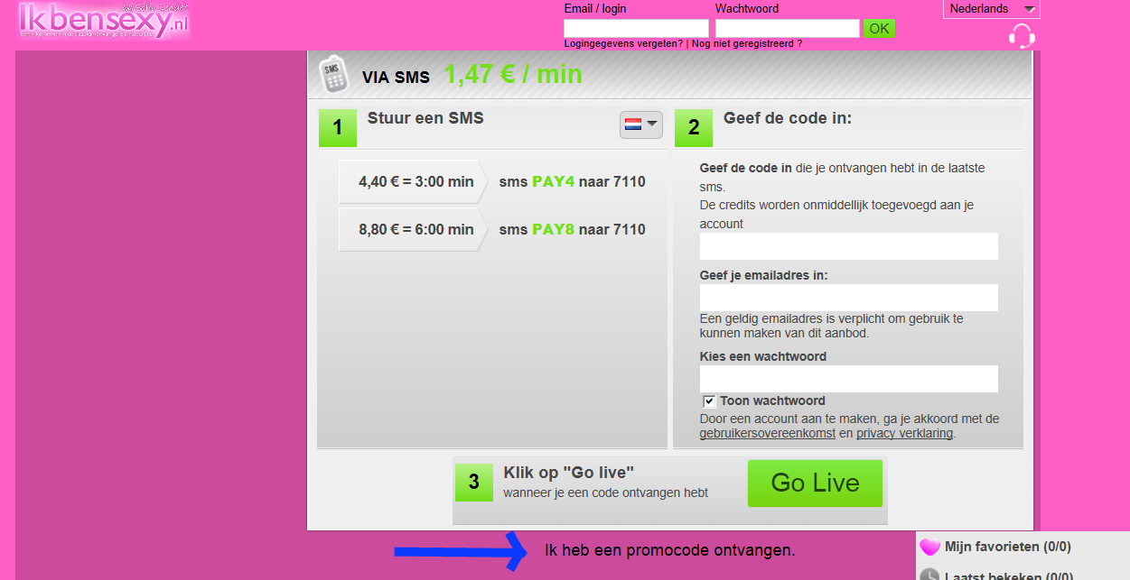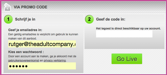 3. Klik op de link: ‘ik heb een promocode ontvangen (zie onderstaande foto).